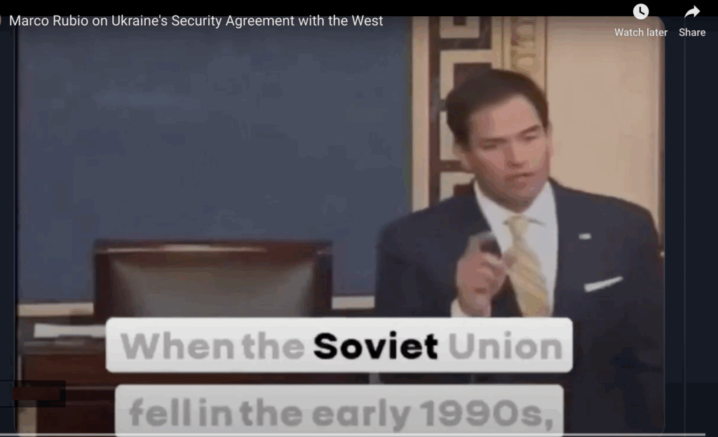Secretarul de stat Marco Rubio, pe vremea când era senator, spunea răspicat că SUA s-au angajat să apere Ucraina, în schimbul renunțării de către aceasta la cel de-al treilea arsenal nuclear, ca mărime, la 5 dec. 1994. Explica în mod real istoria.
